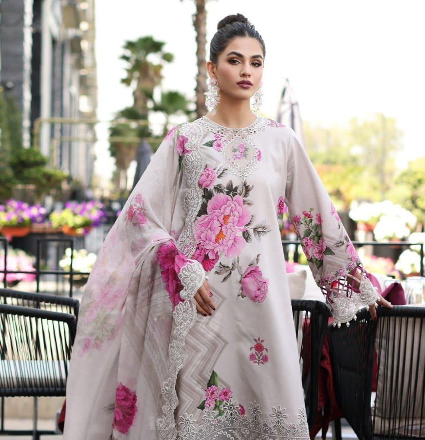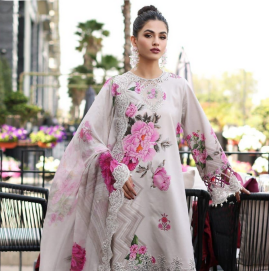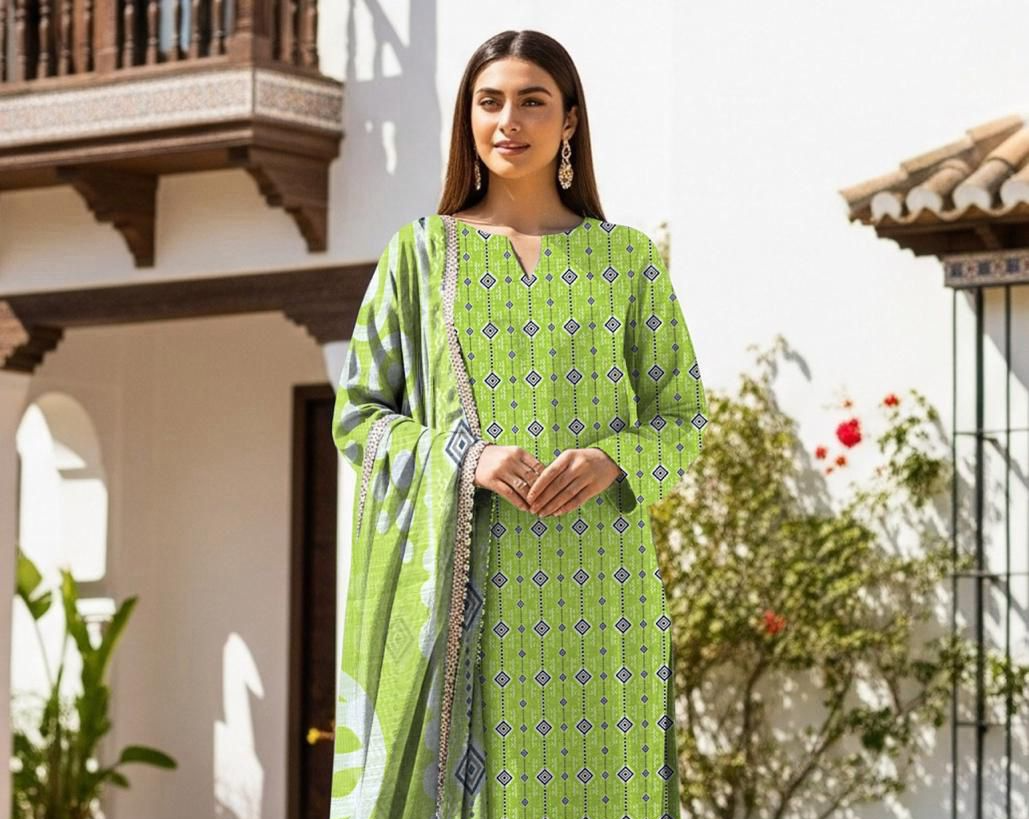 Elegant Embroidered Lawn Suit with Chiffon Dupatta – 3 Piece Unstitched Women’s Outfit