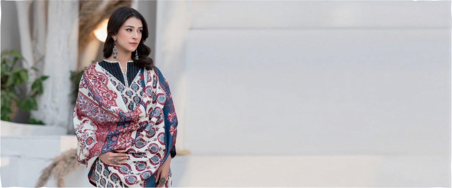 Sapphire Digital Printed Khaddar 3-Piece Unstitched Suit - Winter Elegance